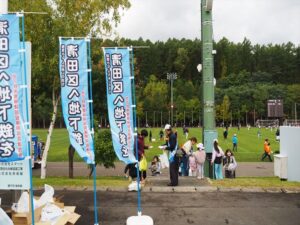 市長は、延伸を望む私たちに「私も同じ思い」と近年、再三おっしゃってくれます。清田区民まつりでは昨年と今年と2年続けて「清田区へ地下鉄を」と書いた当期成会ののぼり旗とともに写真に収まってくれました。この「同じ思い」の秋元市長に、ぜひ清田延伸の方向性を3期目の任期中に示していただきたいのです。