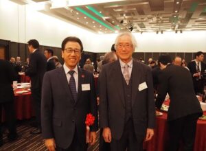 秋元市長と期成会の牧野会長(右)=清田区新年交礼会で